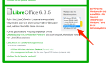 Falls du dir nicht sicher bist, für welches Betriebssystem du die Installationsdatei laden sollst, gehe am besten über die über die offizielle Download-Seite von LibreOffice. Dort wird normalerweise ein Vorschlag zum Betriebssystem gemacht. Bei Windows muss man meist noch 64-bit auswählen. Vergiss nicht die Installationsdatei für die Hilfedatei in deutscher Sprache extra zu laden. Es kann sein, dass die Version 6.3.5.2 dort nicht mehr verfügbar ist. Bitte lade dann eine Version mit der Nummer 6.3.5.X oder 6.3.X.X herunter! Damit arbeiten wir alle mit möglichst gleichen Versionen. Oder du benutzt die oben angeführten direkten Donload-Links zu den Installationsdateien.