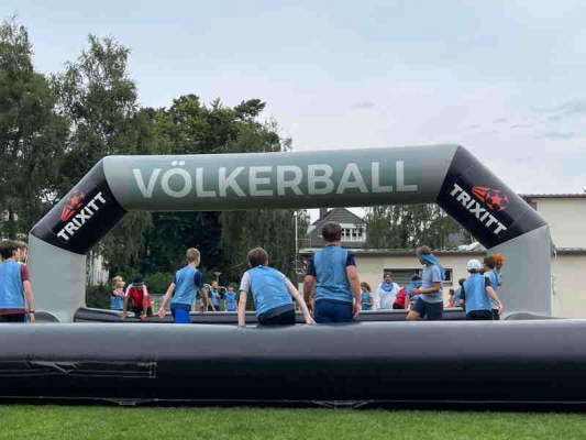 Die Klassen traten in der Schießbude (Menschenkicker) und beim Völkerball gegeneinander an. Spannung, Spaß und eine Menge Aufgaben warten auf alle Beteiligten. Auch beim Speedmaster-Sprint (Disziplin Laufen), beim Basketball und im Hindernisparcours wurde den Mädchen und Jungen einiges abverlangt. Bewegung, Teamgeist, Wettkämpfe: es war einiges los an diesem außergewöhnlichen TRIXITT-Tag. Ein echter Volltreffer!